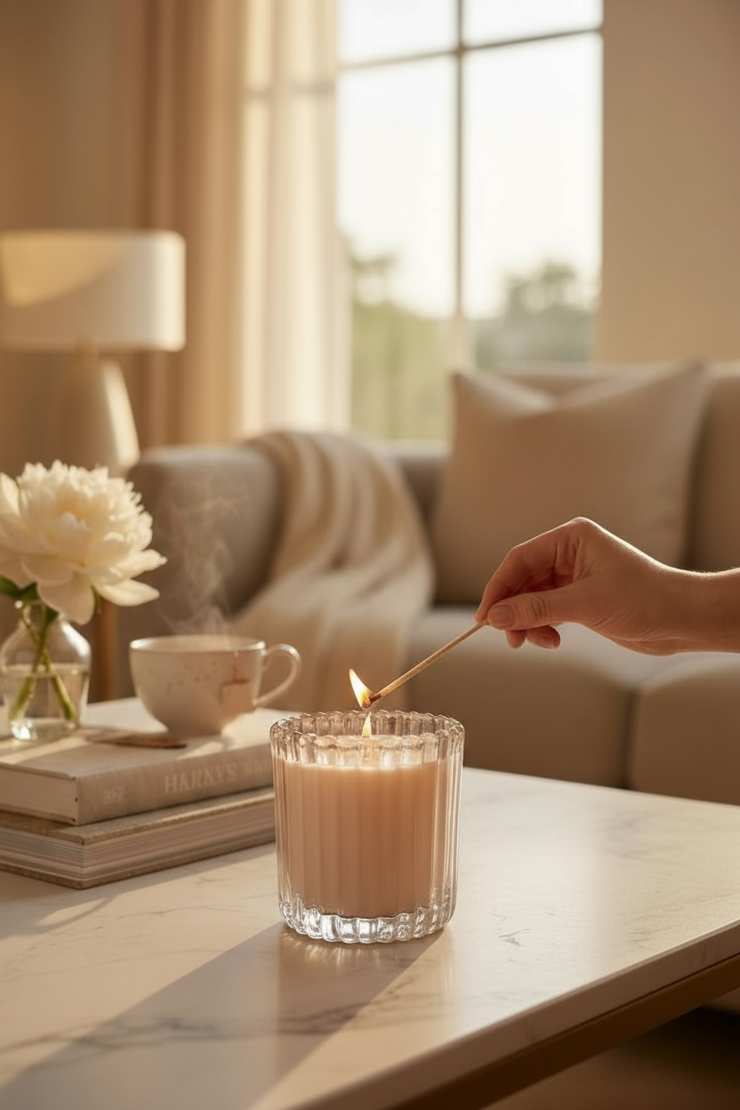 Bougie Non Parfumée à la Cire de Noix de Coco Flamme Silencieuse. Ambiance...